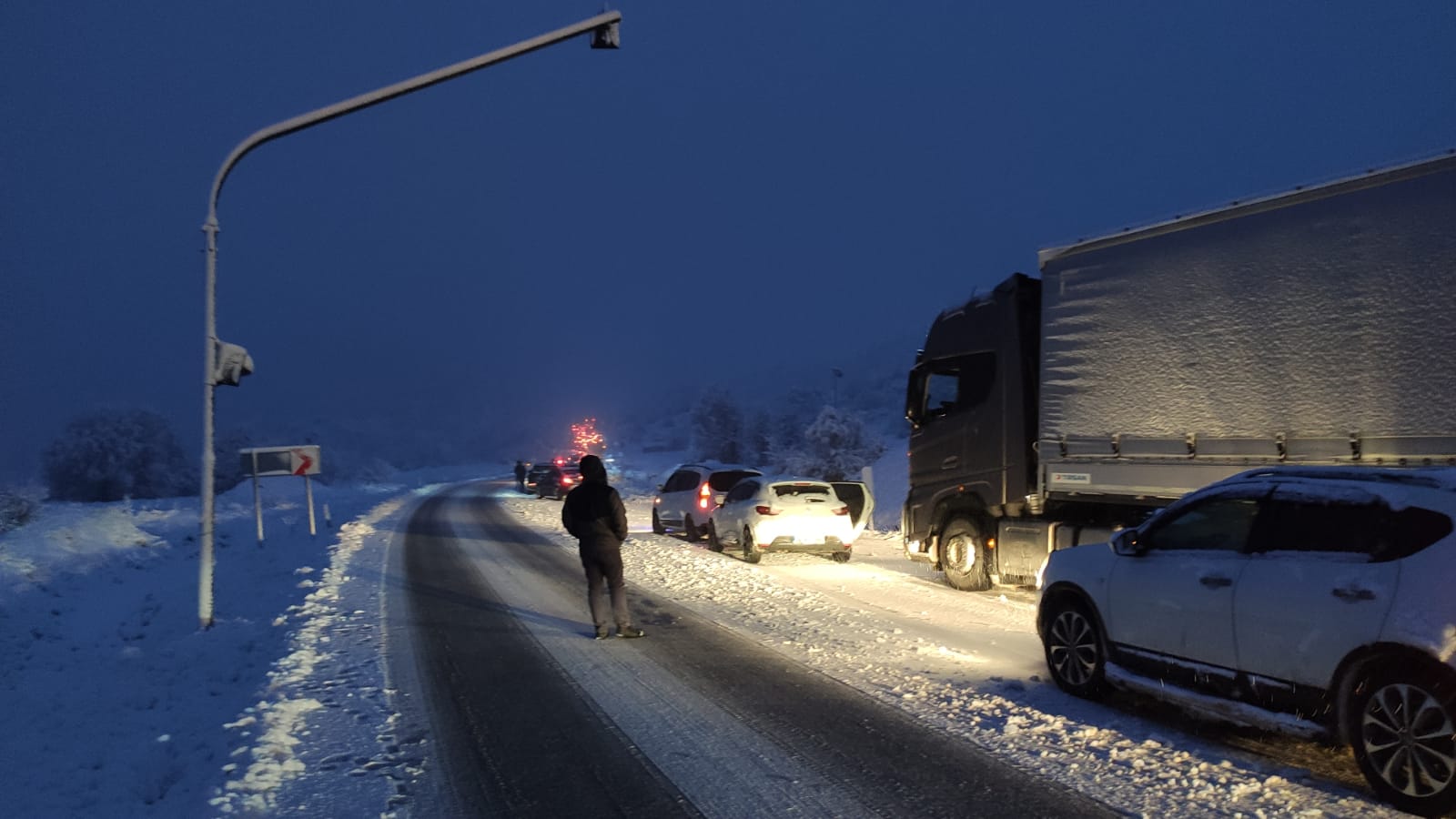 Ekipler yolu tekrar trafiğe açabilmek için aralıksız olarak tuzlama çalışması yapıyor.