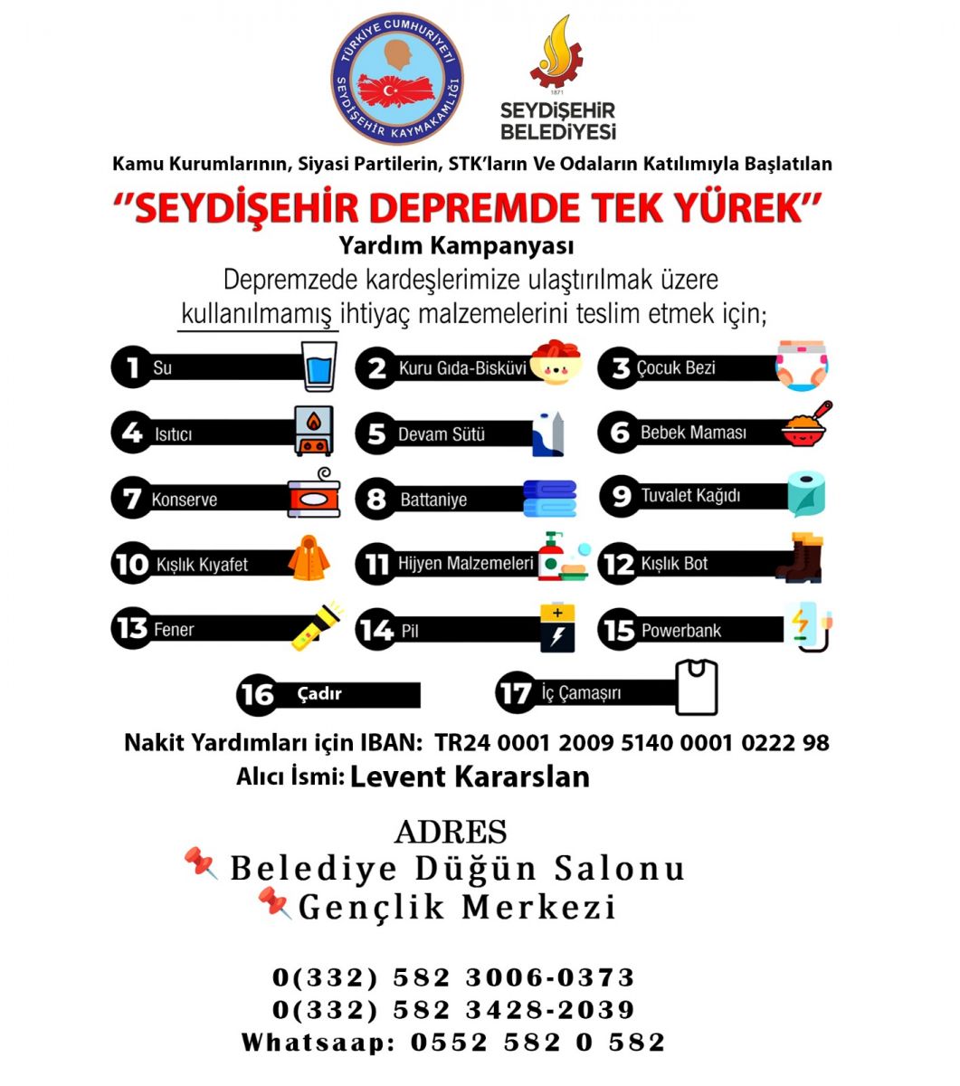 Seydişehir Kaymakamlığımız ve Seydişehir Belediyemiz işbirliğinde; Kahramanmaraş'ın Pazarcık ilçesinde meydana gelen, bölgedeki birçok il ve ilçede felakete sebep olan depremde genel hayatı etkileyen şartların giderilmesi ve afetzede vatandaşlarımızın ihtiyaçlarının karşılanması için ilçemizdeki Kamu Kurum ve Kuruluşları, Siyasi Partiler, STK’lar ve Odaların katılımı ile "YARDIM KOORDİNASYONU TOPLANTISI" gerçekleştirdik.