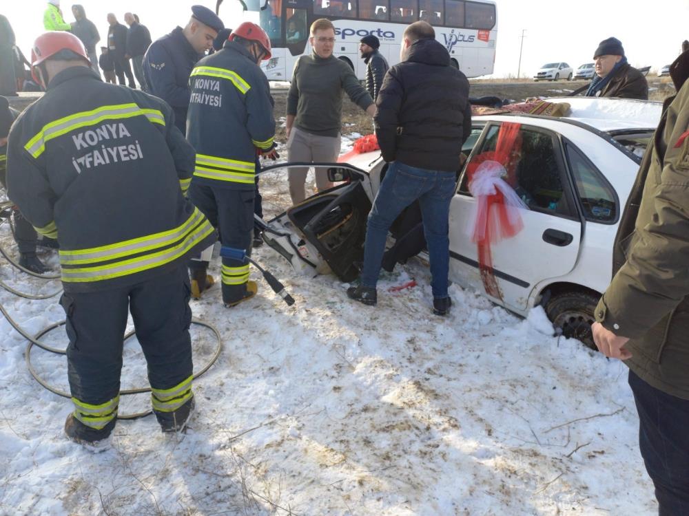 Yaralılardan damadın babası H.İ. yapılan müdahale sonrasında Konya Şehir Hastanesi'ne sevk edilirken, sürücü ve gelinin ise hayati tehlikesinin bulunmadığı öğrenildi. Gelin alma yolunda düğününe giderken geçirdiği kaza sonucu hayatını kaybeden damat Emre İmriz'in cansız bedeni hastane morguna kaldırıldı. Kazayla ilgili soruşturma sürüyor.