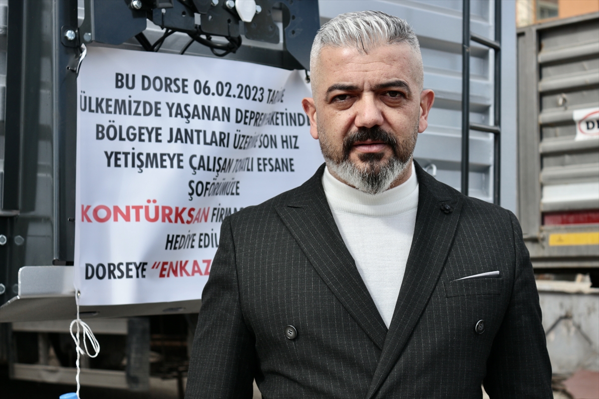 KONYA (AA) - Kahramanmaraş merkezli 6 Şubat'taki depremlerin ardından tıra yükledikleri yardım malzemelerini, aracının iki lastiğinin patlamasına rağmen bölgeye ulaştıran şoföre, Konyalı bir üretici firma tarafından yeni dorse verildi.