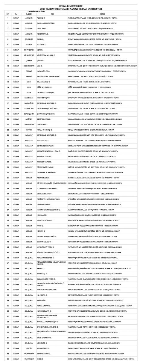 İŞTE KONYA GENELİNDE HATİMLE TERAVİH NAMAZI KILDIRILACAK CAMİLER: