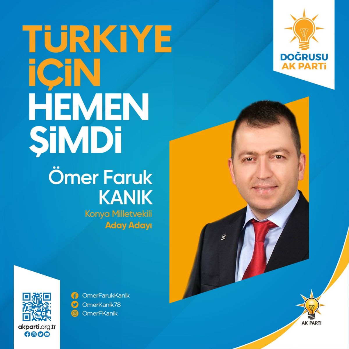 Hepinizin bildiği üzere 25 Mart 2023 Cumartesi günü saat 10:00’da Konya’da Milletvekili adaylarının belirlenmesi aşamalarından bir tanesi olan temayül yoklaması yapılacaktır. Bu temayül yoklamasında şahsıma destek vermenizi siz değerli hemşerilerimden rica ediyorum. Sizlerin şahsıma vereceği desteğe yürekten inanıyor ve şimdiden her birinize ayrı ayrı teşekkür ediyorum.