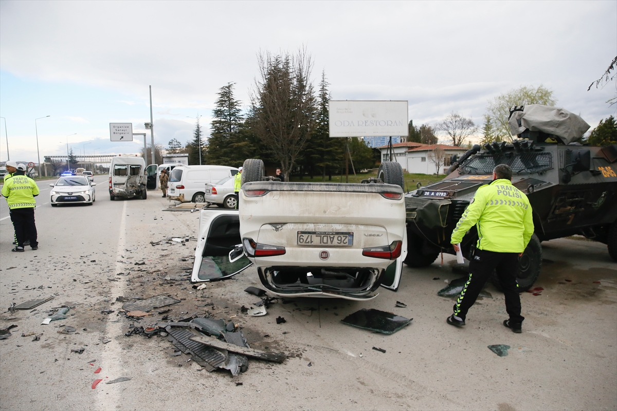 ESKİŞEHİR (AA) - Eskişehir'de bir otomobilin ekip aracına çarpması nedeniyle yaralanan 5'i polis memuru 6 kişi, hastanede tedavi altına alındı.