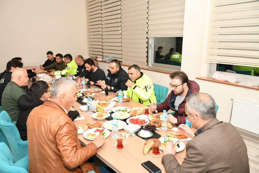 Kaymakam Pişkin konuşmasında; "Vatandaşımızın huzur ve güvenliği için 24 saat kesintisiz görevinin başında olan İlçe Emniyet Müdürlüğümüz personeli ile sahurda biraraya gelmekten mutluluk duyduk.