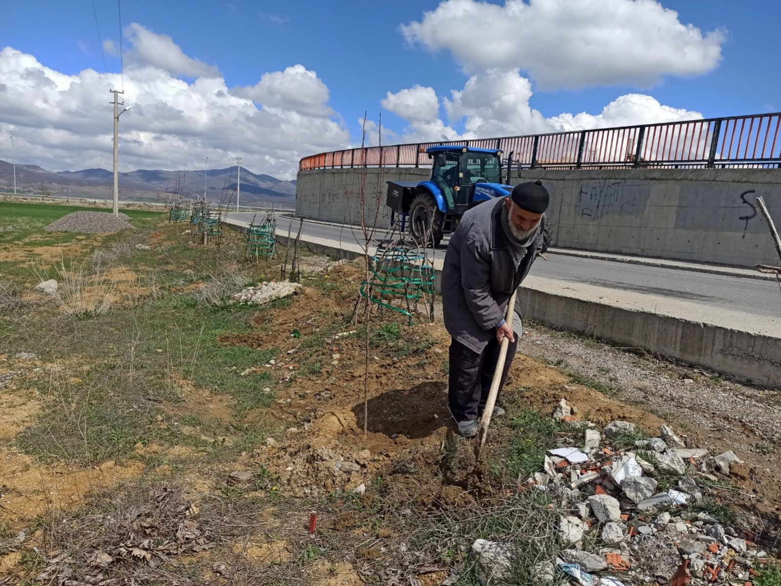 Ağaçlara çocuğu gibi bakarak ilgilenen Adil Bilen “Evime yakın olduğu için ağaçlandırmaya çalışıyorum, daha da devam edeceğim. Bu güne kadar Karacaören Mahallesinde, hastane önlerinde bin’ e yakın ağaç diktim. Boş gördüğüm yere badem ekerim, pelit ekerim, çam ekerim. Şimdide ağaçların diplerinin otlanmaması için kenarlarını açıyorum, kendi imkânlarım ile biraz çakıl döktürdüm o kısımdaki ağaçların dibini çakılladım, bu taraftaki çakıl fazla olunca kendi imkânlarım ile bu kısmı çakıllayamadım, kepçe lazım. Sonbaharda ağaçlar otlar kuruduğunda yol kenarı olunca ateş atarlar, sigara atarlar ağaçlar yanmasın diye bu çakılın ağaçların diplerine dağılması gerekiyor bunun içinde Belediyeden destek bekliyorum” dedi.