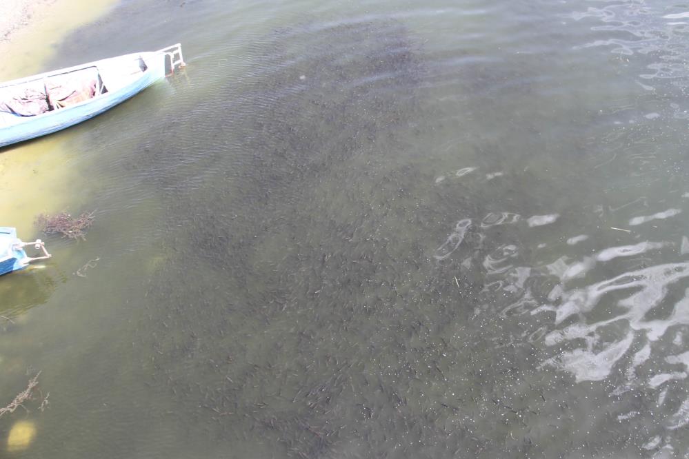 Akıntı sebebiyle her yıl bu dönemde Taşköprü ile Eşrefoğlu köprüsü arasında kalan kıyılara gelen ve buradaki otların altında beslenmeye çalışan yavru balıklar, göl yüzeyini kaplarken görenlerin de meraklı bakışlarına yol açıyor.