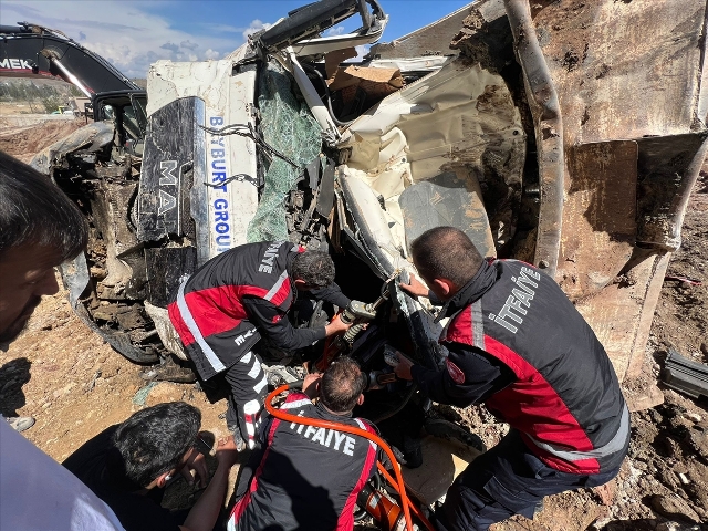 Alınan bilgiye göre, Kenbağ mevkisinde çevre yolu inşaatında çalışan Gani Şentürk yönetimindeki 06 DY 7986 plakalı hafriyat yüklü kamyon, yokuş aşağı inerken kontrolden çıkarak önünde seyreden aynı inşaatta çalışan plakası ve sürücüsünün ismi henüz öğrenilemeyen beton pompası taşıyan çekiciye çarptı.