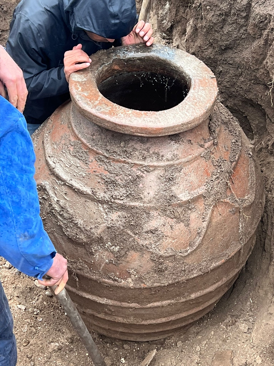 Jandarma gözetiminde, uzman ekiplerce çıkarılan ve 5 ya da 6. yüzyıla ait tahıl küpü (pitos) olduğu değerlendirilen eser, Kayseri Müze Müdürlüğüne teslim edildi.