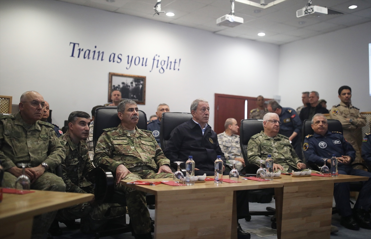 Akar, tatbikat için Konya’ya gelen Azerbaycan Savunma Bakanı Orgeneral Hasanov’u 3'üncü Ana Jet Üs Komutanlığında karşıladı. Anadolu Kartalı Eğitim Merkezi'ne gelişlerinde tören mangasını birlikte selamlayan Akar ve Hasanov ardından hatıra fotoğrafı çekimine katıldı.