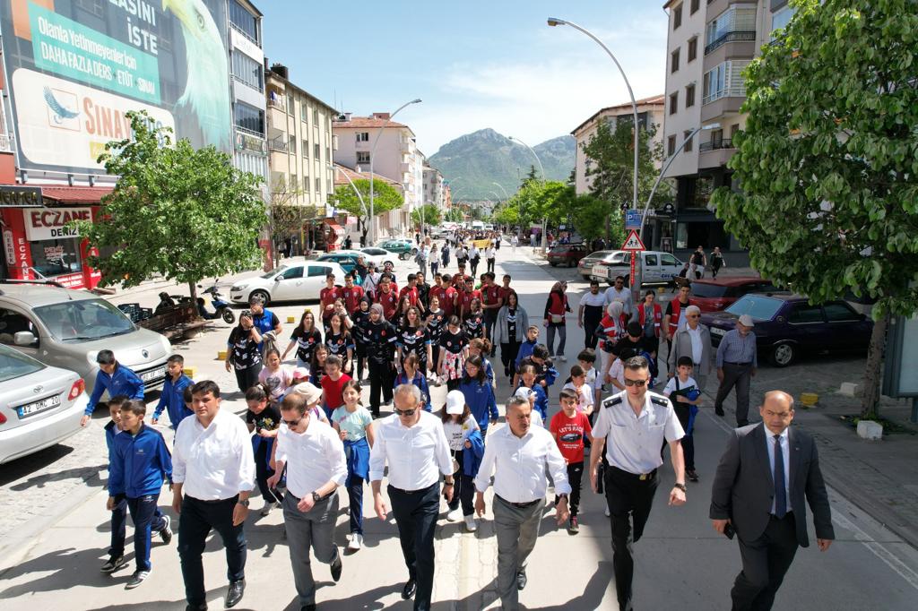 Yürüyüşe Kaymakam Deniz Pişkin, Belediye Başkanı Mehmet Tutal, Cumhuriyet Başsavcısı Kadir Yalçın Özkubat, İlçe Jandarma Komutanı Salih Yahya Koca, Gençlik Hizmetleri Spor İlçe Müdürü Soner Balcı, daire amirleri, okul müdürleri, öğretmenler ve öğrenciler katıldı.