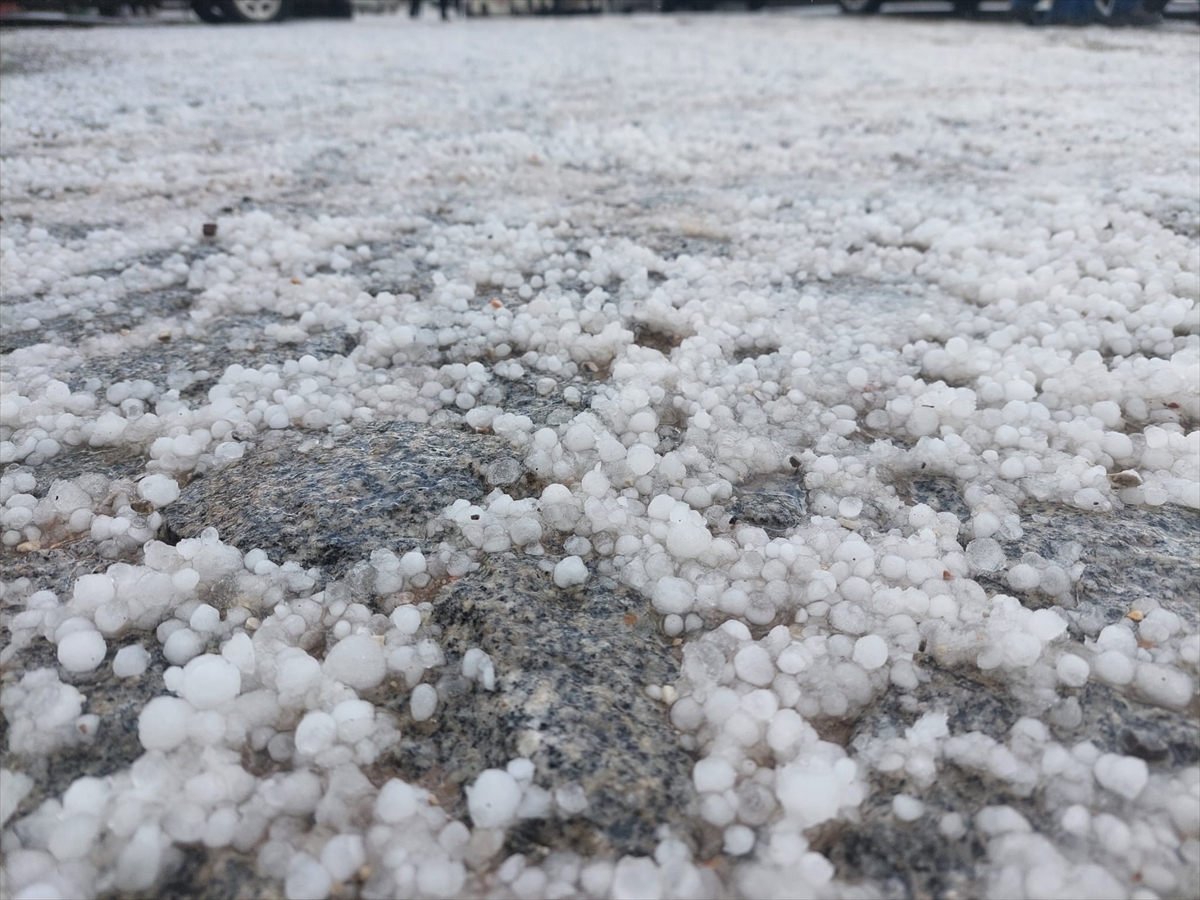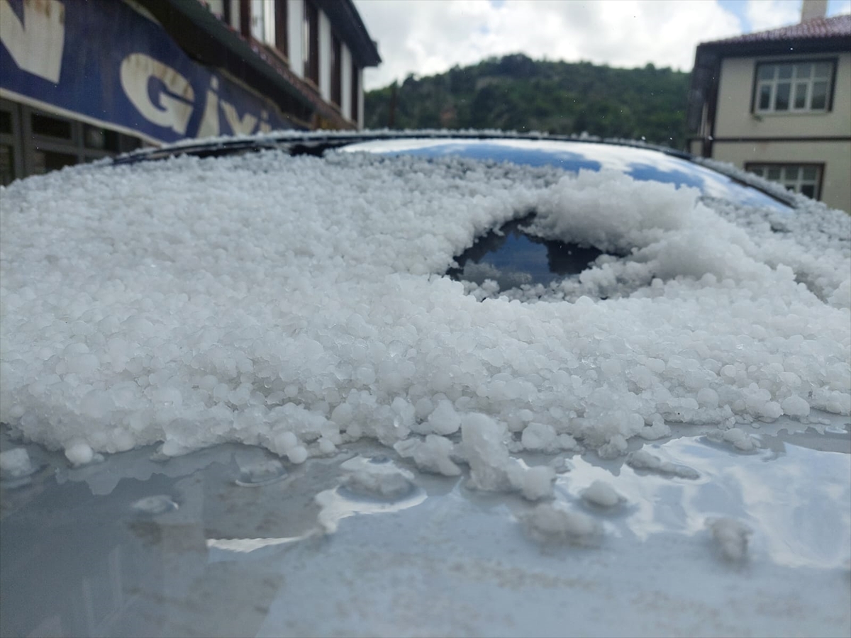 Cuma namazı öncesi başlayan sağanağın ardından dolu etkili oldu.