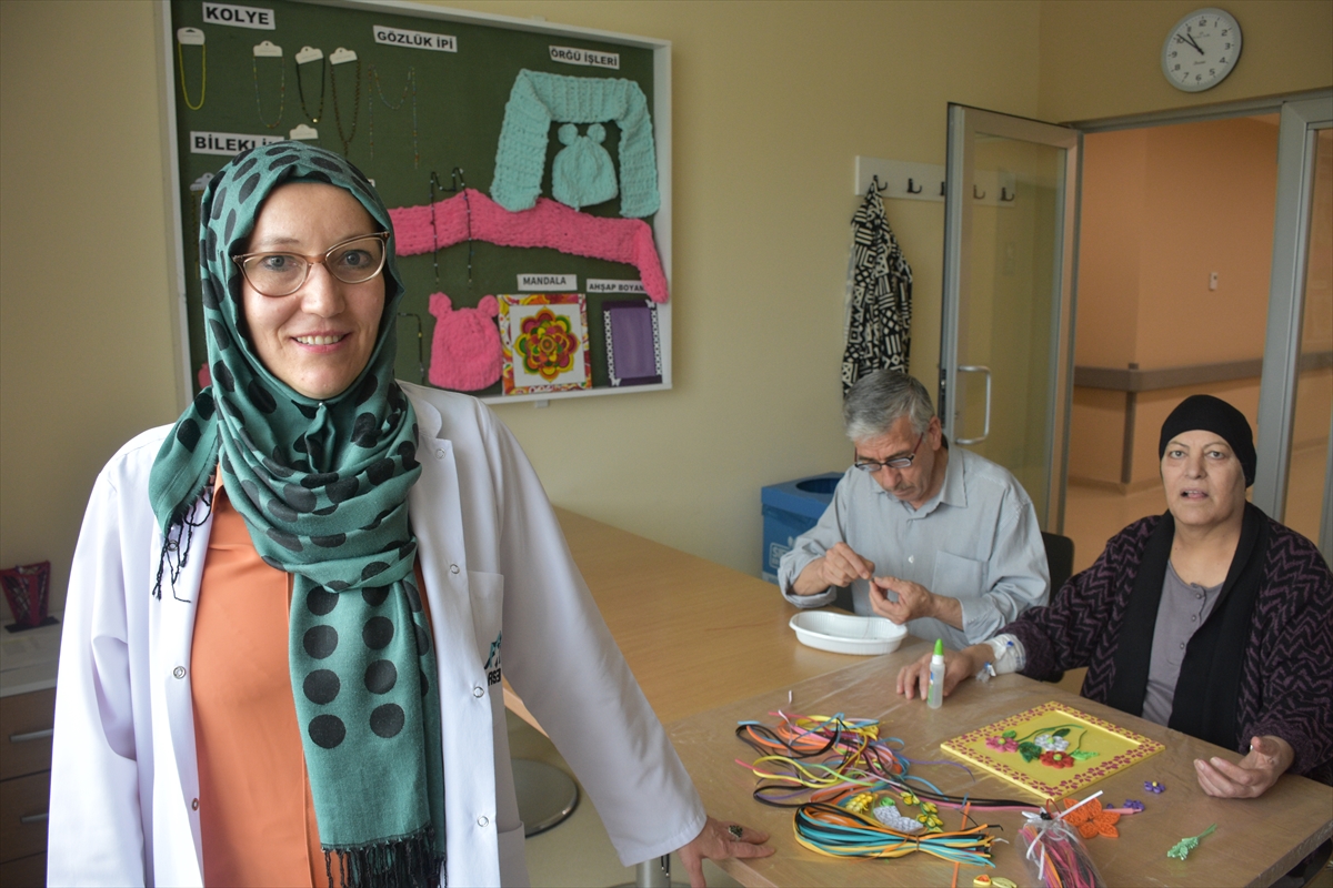 Haftanın 4 günü yaklaşık 60 hastayı odalarında ziyaret ettiğini aktaran Kiremitçi, bir gün de refakatçilerin onkoloji servisinde oluşturulan el sanatları odasına geldiğini dile getirdi.