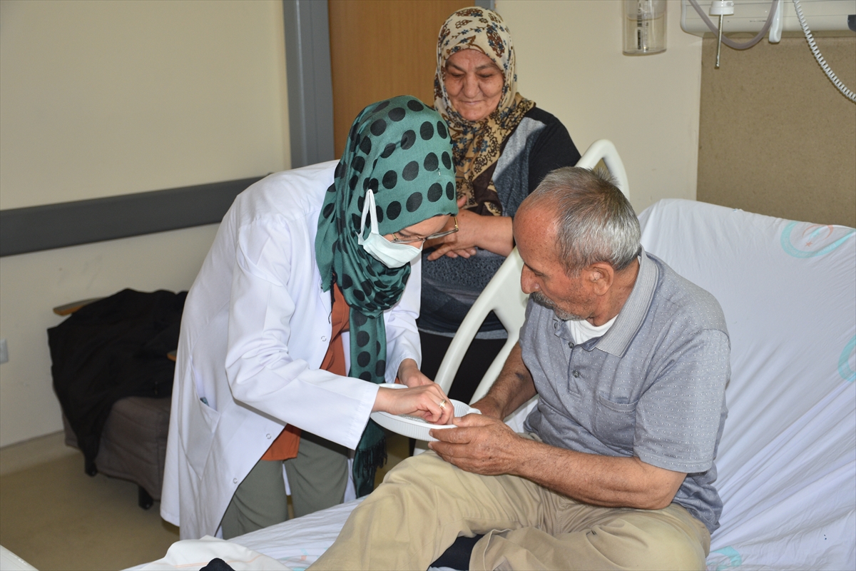 Kan değerleri biraz yükselince 3-4 gün eve gittiğini vurgulayan Tutuş, "Büşra hanım her konuda yardımcı oluyor. Bileklik, gözlük ipi, kolye yapıyorum, telefon ipi, tespih yapıyorum. Yaptıkça çocuklarıma, torunlarıma, sevdiklerime, hemşirelere hediye ediyorum. Kendimi iyi hissediyorum. Vakit geçiriyorum, ağrılarımı unutuyorum. Bu el işleriyle rahatladım." diye konuştu.