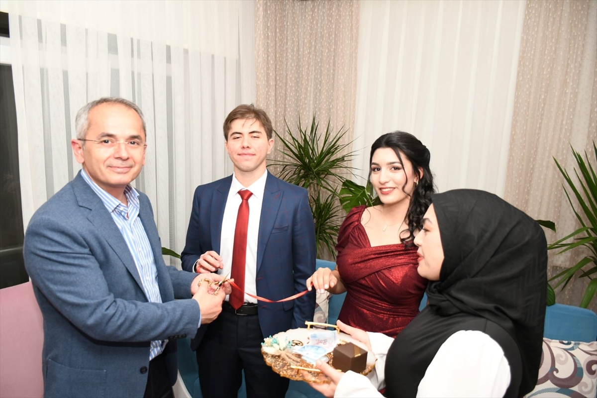 Aileyi ziyaret eden Pişkin, Ecem Sude Ozan ile Birdal Yunus Yeşilçimen'in söz yüzüklerini taktı.