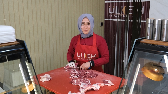 KONYA (AA) - Konya'da bir iş yerindeki "eleman aranıyor" yazısıyla hep ilgi duyduğu kasaplık mesleğine adım atan 28 yaşındaki Ülkü Mariye Yentürk, iki yıl önce açtığı dükkanında müşterilerine hizmet veriyor.