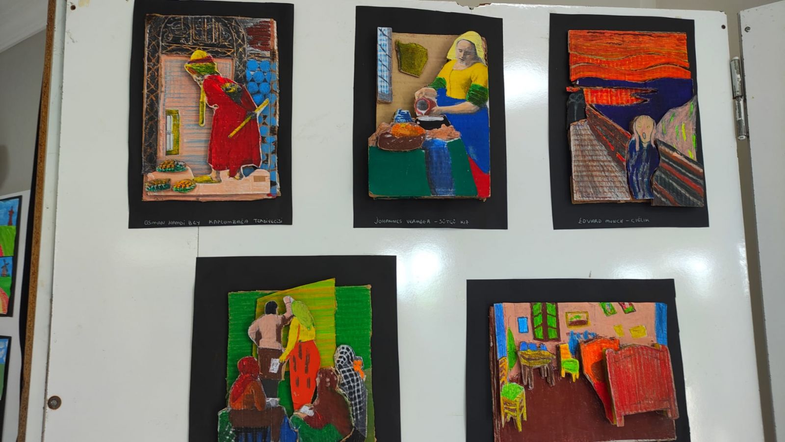 Serginin geliri 6 Şubatta yaşanan Yüzyılın depreminde etkilenen vatandaşlarımızı yararına kullanılacak. İsteyen Vatandaşlar Sergiden öğrencilerin hazırladığı el emeği göz nuru birbirinden güzel Resimlerden satın alarak destek verebilirler.