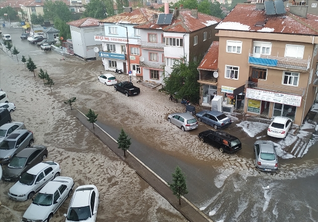 Öte yandan Konya'nın Doğanhisar ilçesinde aniden sağanak yağışı meydana geldi. Sağanak yağışla birlikte dolununda yağdığı ilçede yollar dereye döndü. Araçlar zor ilerledi.