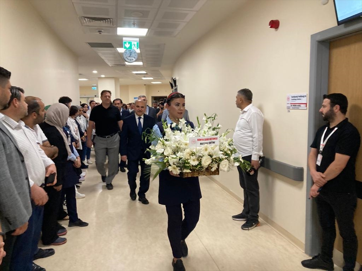 Karakaya'nın mesai arkadaşları, Konya Şehir Hastanesi'ndeki odasının önünde bir araya gelerek, odasına çiçek bıraktı.