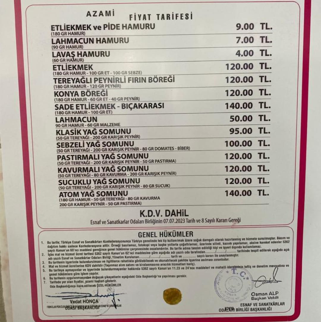Konya’da 180 gram etliekmek ve pide hamuru fiyatının 9 liraya yükseldi.