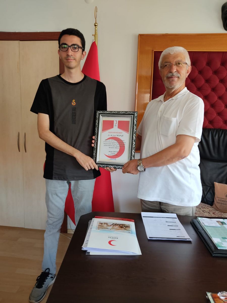 İlçemizin medarı iftiharları bu yavrularımızı tekrar tebrik ediyorum. Kabul etmeleri durumunda kendilerini Kızılay Gönüllüsü yapacağız. Boş gönüllülük formlarını kendilerine verdik. Uygun bulurlar da doldurup getirirlerse, Kızılhaç'a bağlı dünyanın dört bir yanında ki, darda-zorda kalan insanlarımızın yardımına koşan Kızılayımızın gönüllüleri olmaktan mutluluk duyacağız.