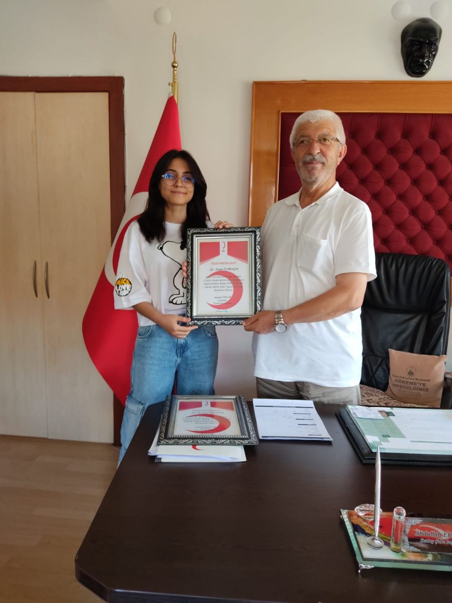2023 yılında yapılan LGS ve YGS sınavlarında, İlçemizde, en yüksek puanı alarak 1. olan öğrencilerimize Teşekkür Belgesi vererek, Kızılay Şube binasında aileleriyle birlikte tanışma çayında bir araya getirdi.