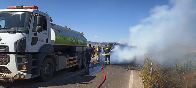 Bu sırada araçtan çıkan alevler, yol kenarındaki bir tarlaya da sıçradı.