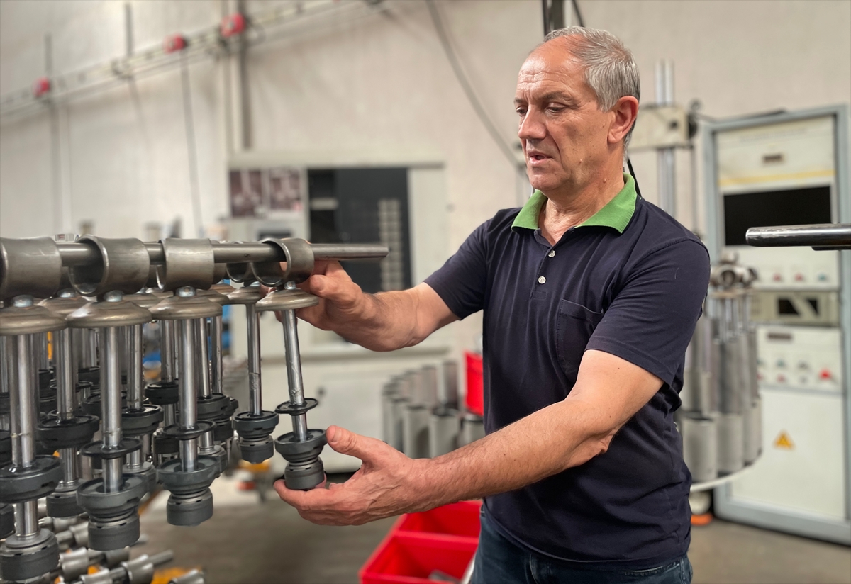 Konya'da emekli Hava Pilot Kurmay Albay Mehmet Ali Geçgel, sanayi sitesindeki işletmesinde yüksek tonajlı araçlar için amortisör sistemleri üretimi yapıyor.