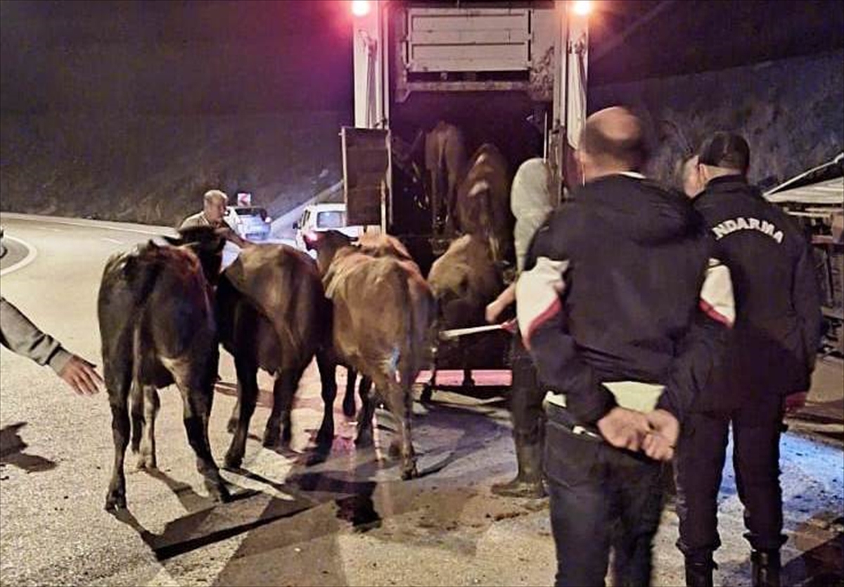 Kazada tırda bulunan 2 tosun telef olurken, 37 adet büyükbaş sahibi tarafından başka bir araca yüklenerek götürüldü.