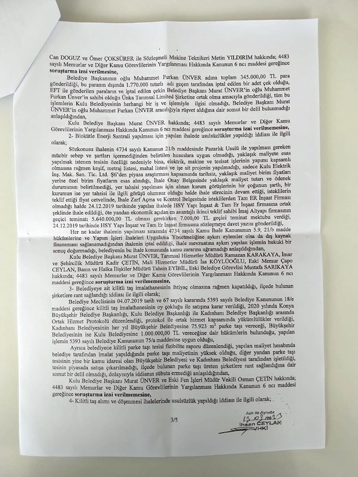 Raporun ardından hakkında soruşturma izni verilen AK Parti'li Kulu Belediye Başkanı Murat Ünver, sosyal medya hesabından açıklamalarda bulundu. Danıştay'a itiraz dilekçesi vereceklerini söyleyen AK Parti'li Ünver, şu ifadeleri kullandı: