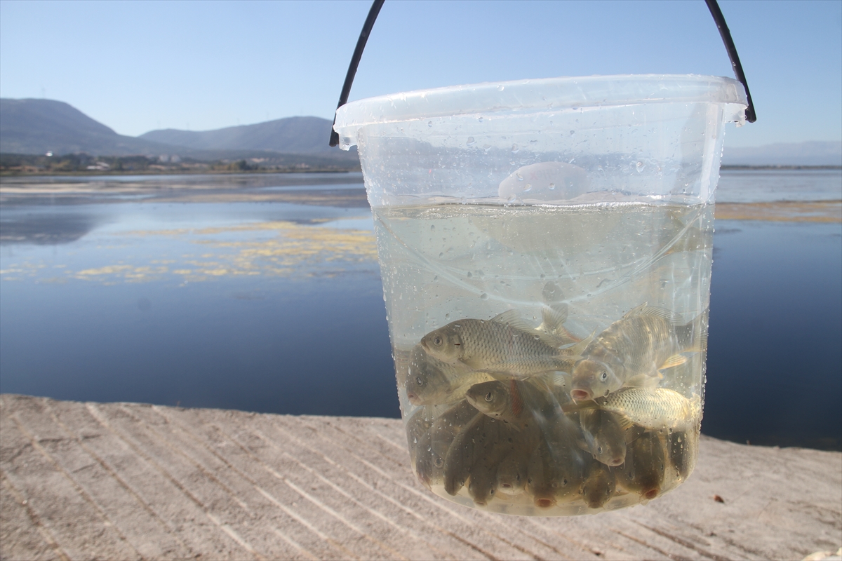 Konuşmaların ardından Tarım ve Orman İl Müdürü Duran Seçen, Belediye Başkanı Adil Bayındır ve protokol tarafından kovalar içerisindeki yavru sazan balıkları göl sularına bırakıldı.