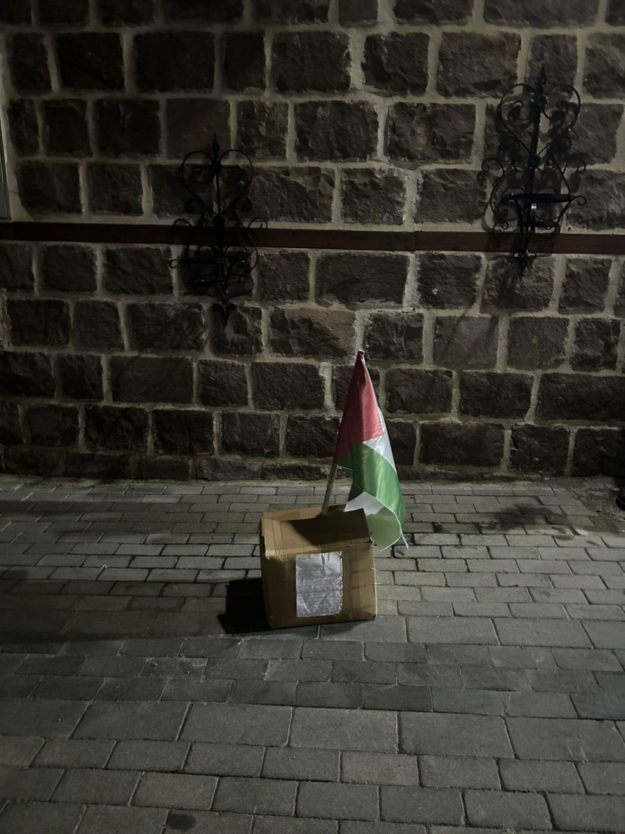 AGD'li gençler Filistin için "Senin ne gücün var, gıdanı bile dışarıdan gönderiyoruz" diyen TBMM Eski Başkanı Bülent Arınç'ın ofisinin önüne gıda kolisi bıraktı.