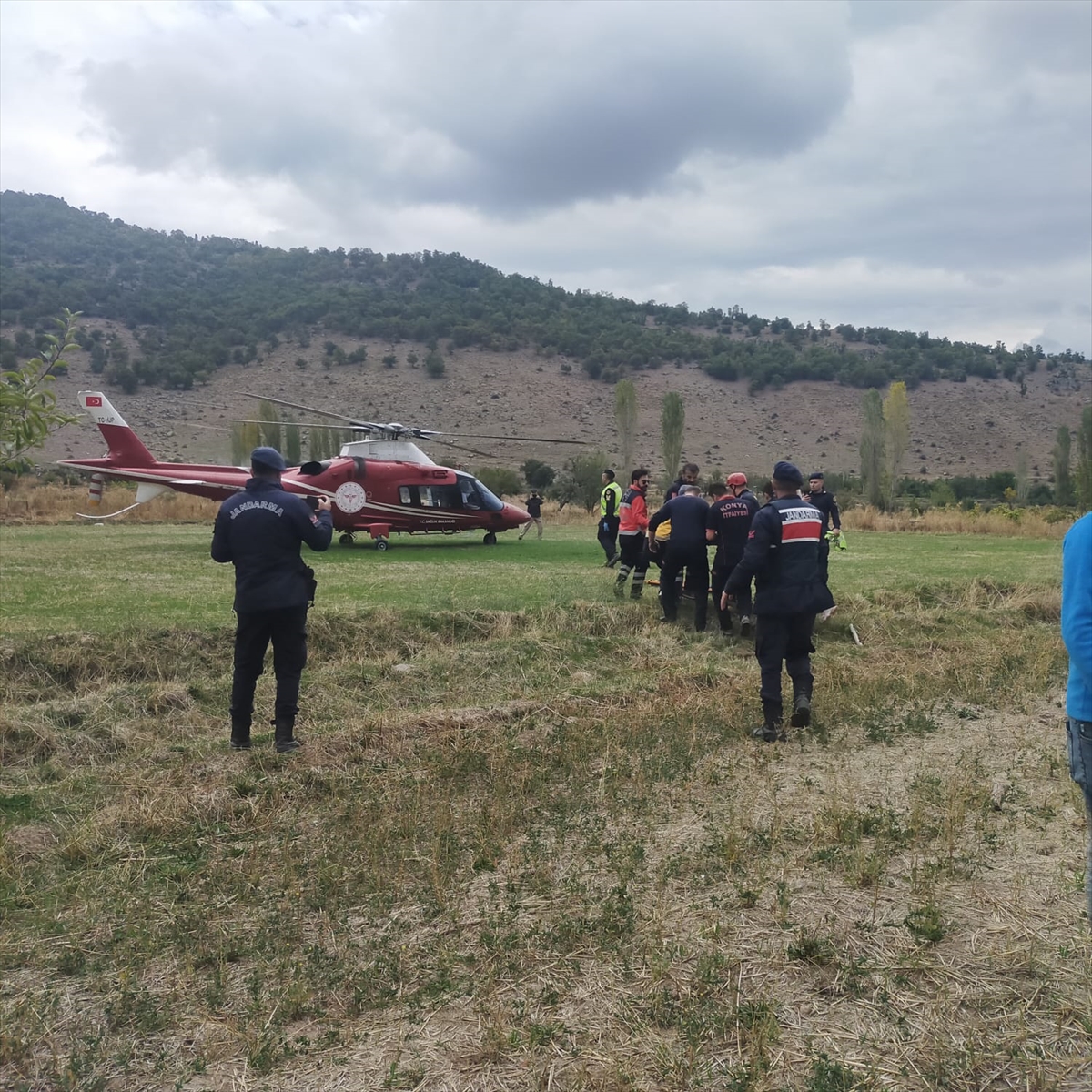 Ayaklarından yaralanan Gürbüz için bölgeye ambulans helikopter sevk edildi.
