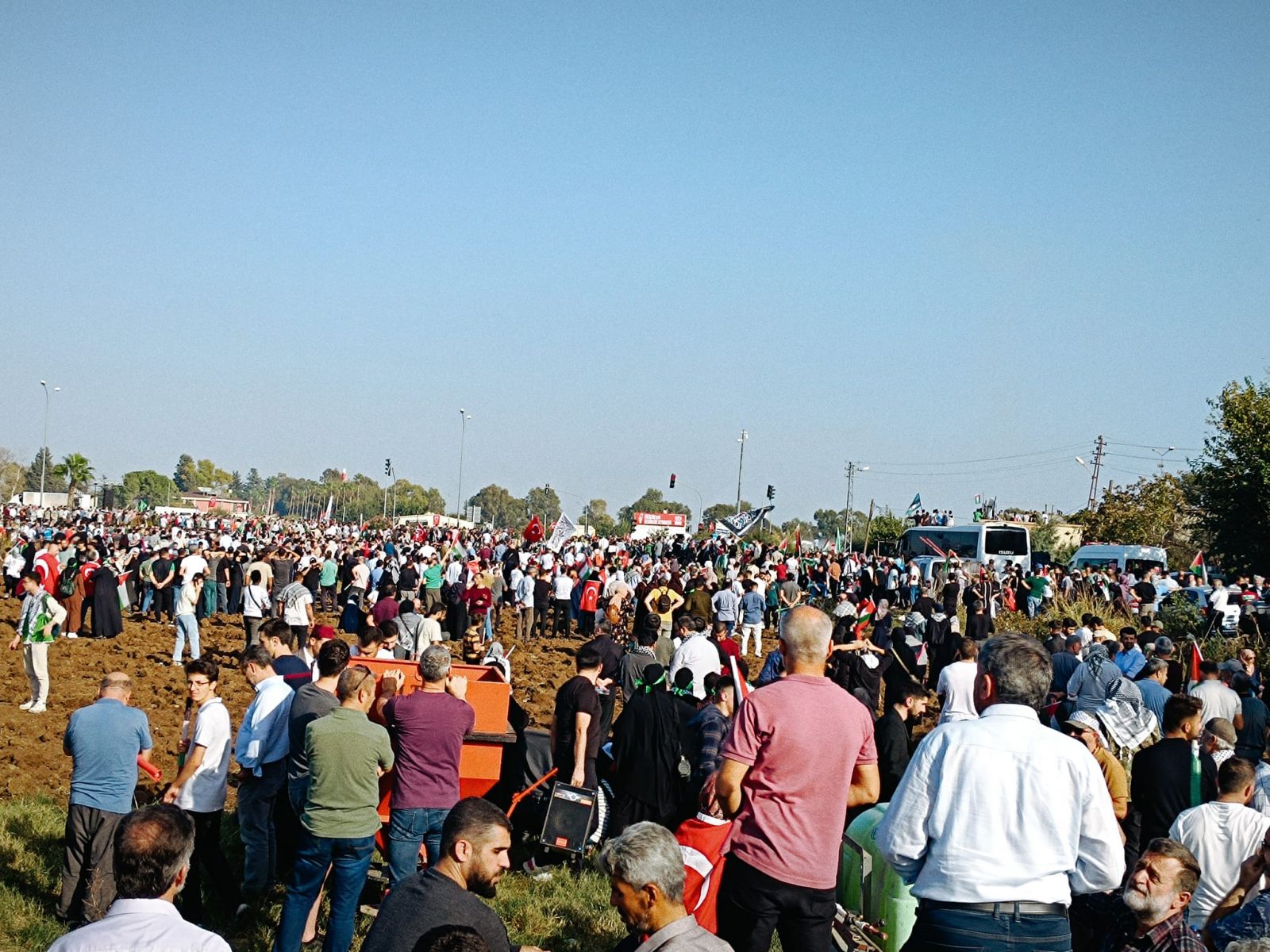 Türkiye genelinde toplanan gruplar, İsrail’in Filistin’deki katliamını ve İsrail'e destek veren ABD'yi protesto etmek üzere İncirlik Üssü’ne geldi. Öğle saatlerinde kalablığın eylemi başladı. Polis gruba İncirlik Üssü’nün arka tarafındaki Sezai Karakoç Bulvarında eylem yapmaları için yer gösterdi.