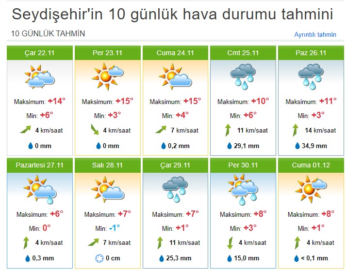 İşte Seydişehirin 10 günlük hava durumu tahmin raporu: