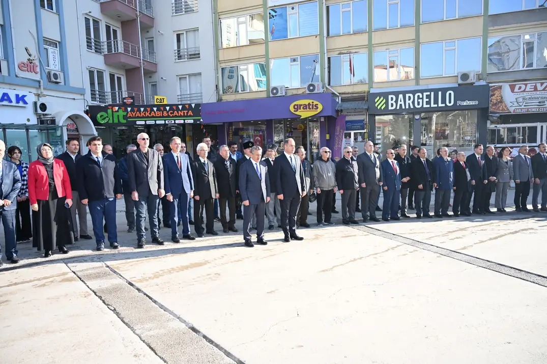 İlk Tören Hükümet Konağı önünde Atatürk Anıtı'na İlçe Milli Eğitim Müdürü Tahir Kibar tarafından çelenk sunulması saygı duruşu ve İstiklal Marşı’nın okunmasıyla başladı.
