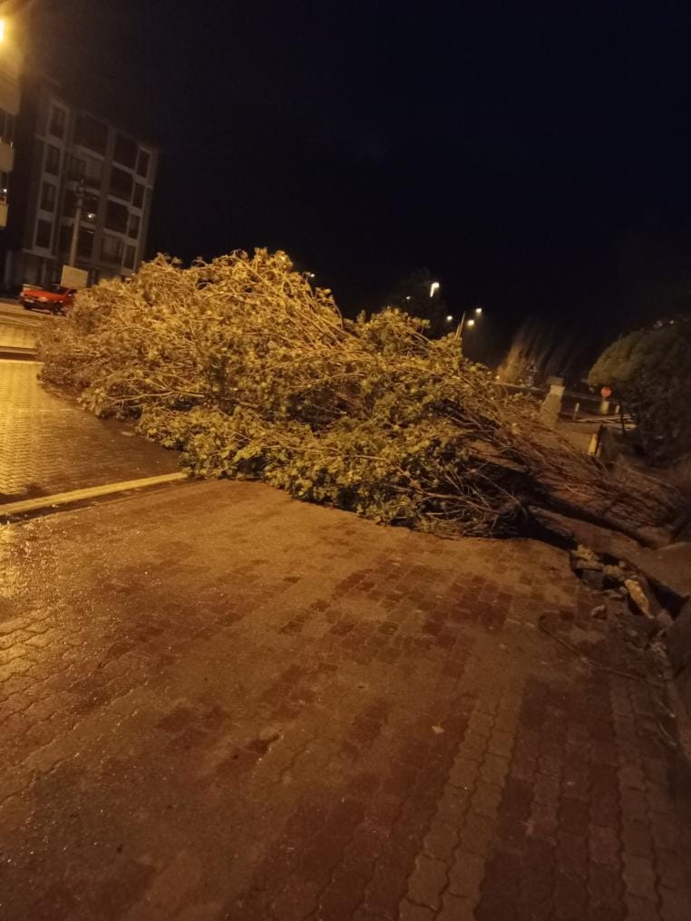 Dün Sabah saatlerinde sağanak yağış, bölgede etkili olmaya başladı. Gece saatlerinde hızı 80-100 km bulan fırtına ve yağış etkisini sürdürüyor. Rüzgarın etkisi ile agaçlar yıkıldı yolları su bastı.