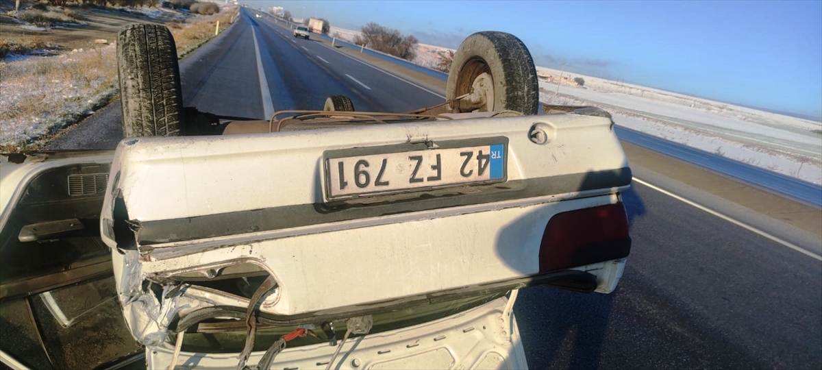 Cuma Zararsız yönetimindeki 42 FZ 791 plakalı otomobil, Apak Kaşı Mevkisi'nde, yoldaki buzlanmadan dolayı sürücünün direksiyon hakimiyetini kaybetmesi sonucu refüje çarpıp, takla attı. Kazada sürücü ile ismi öğrenilemeyen 1 kişi yaralandı. Yaralılar ambulansla Karapınar Devlet Hastanesi'ne kaldırıldı.