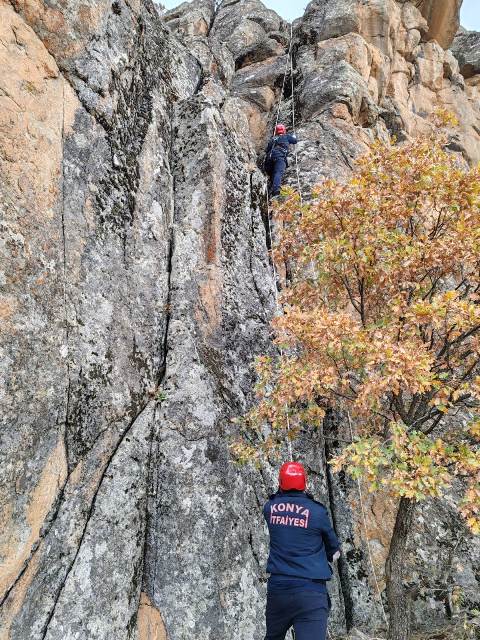 Seydişehir de sarp kayalıklarda keçi kurtarma operasyonu
