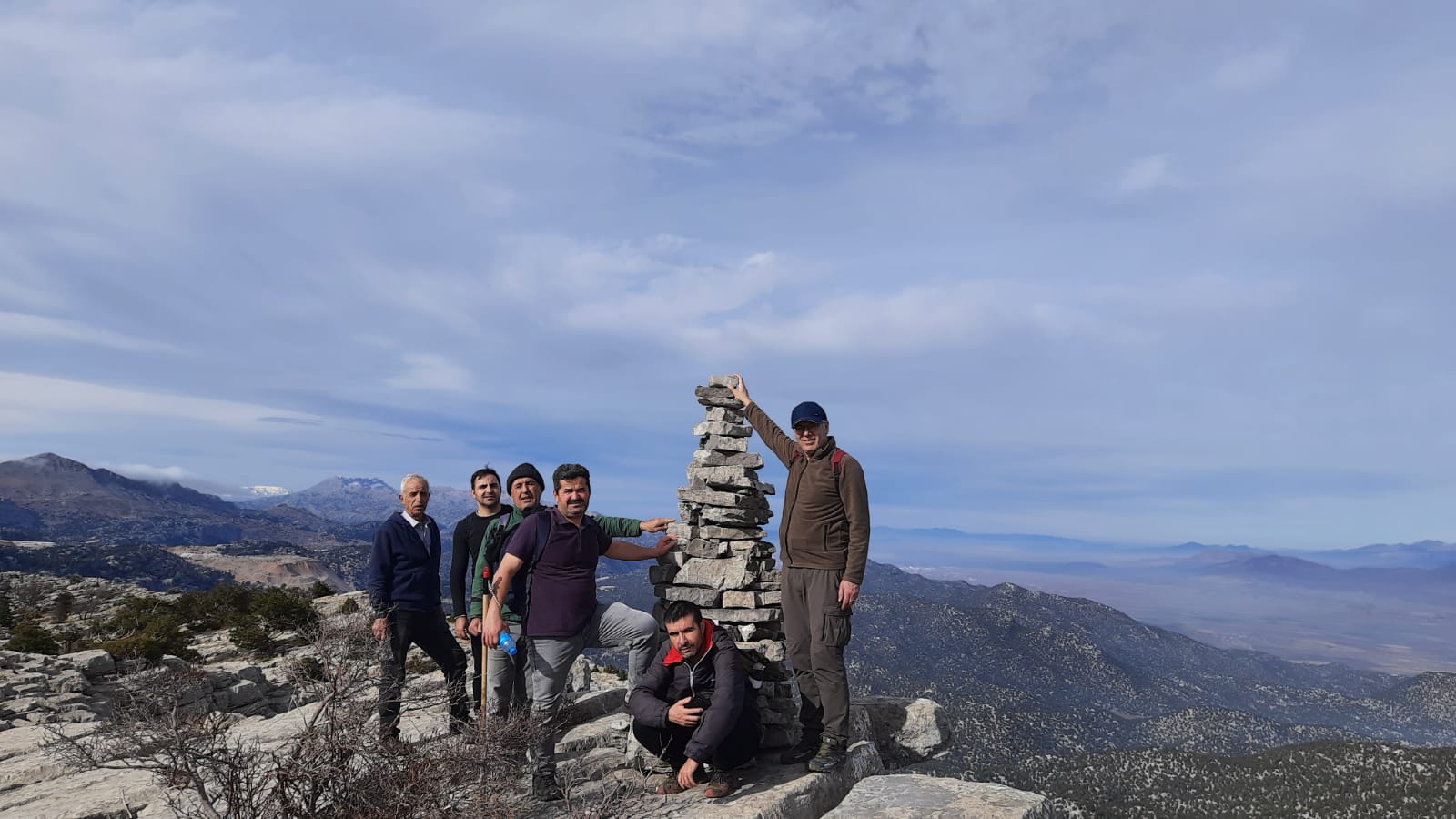 İlçeye 27 kilometre uzaklıkta, Konya-Antalya kara yolundaki dağa yaklaşık 2 saatte tırmanan dağcılar, zirvede Türk bayrağı ve filistin Bayrağı açtı.