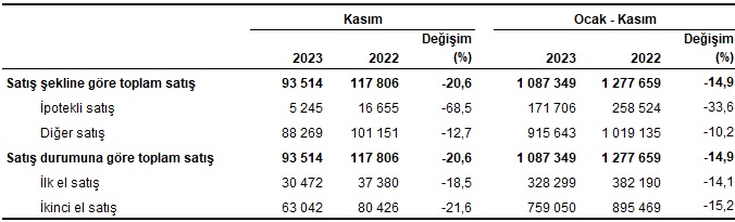 Konut satışı, Kasım 2023