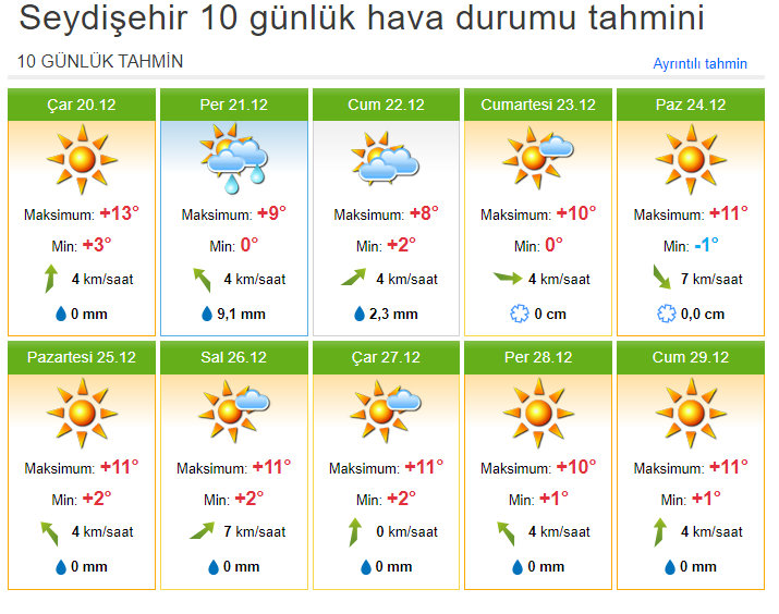 SEYDİŞEHİR İÇİN 10 GÜNLÜK HAVA DURUMU