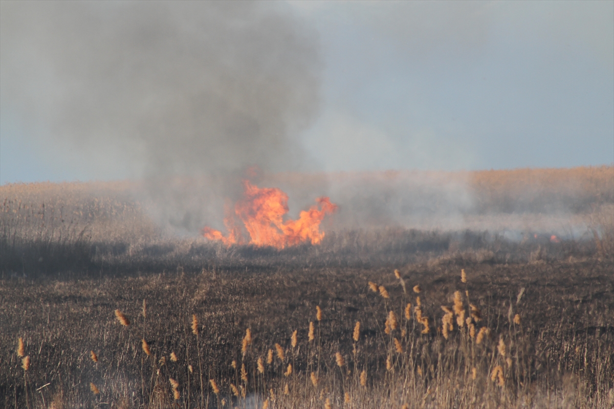 Bir süre sonra kendiliğinden sönen yangında sazlık alan zarar gördü.