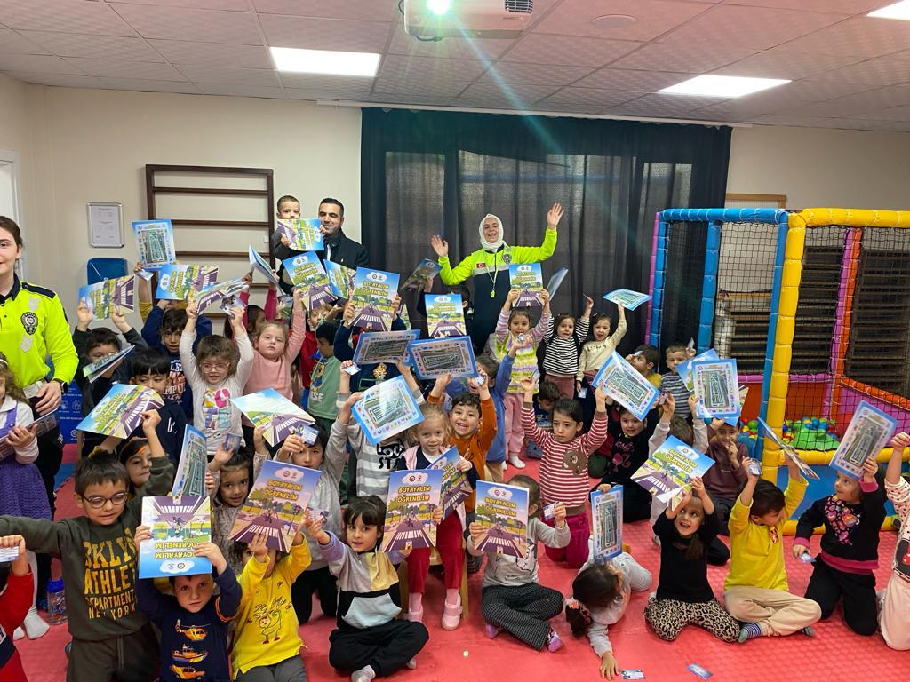 Konya Emniyetine bağlı Trafik Denetleme Şube Müdürlüğü Trafik Eğitim Büro Amirliğinde görev yapan trafik polisleri Selçuklu ilçesinde bulunan Hatice Ercüment Köylübay Kızılay Anaokulu'nda öğrencilerle bir araya geldi. Ekipler ‘’Trafik Dedektifleri Projesi’’ kapsamında 55 öğrenciyi trafik kuralları konusunda bilgilendirdi.