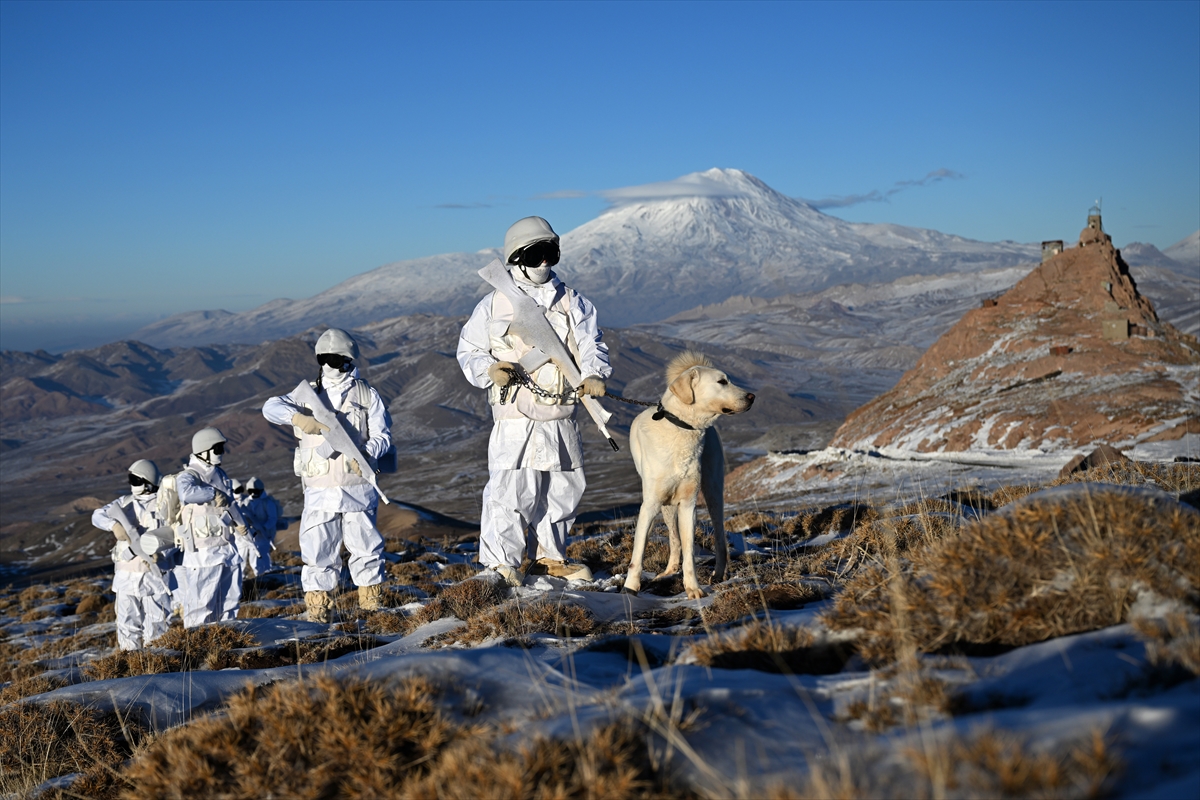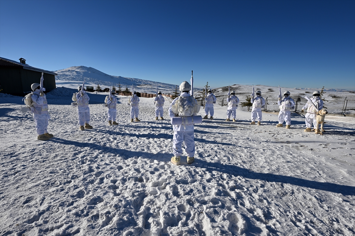 Her intikal öncesi komando andını okuyarak, "Korku nedir bilmeyiz, biz dağların erleri" diyen Mehmetçik, coğrafi koşullara ve iklime uygun özel teçhizatlarını ve kar kamuflajlarını giyerek devriye görevini gerçekleştiriyor.