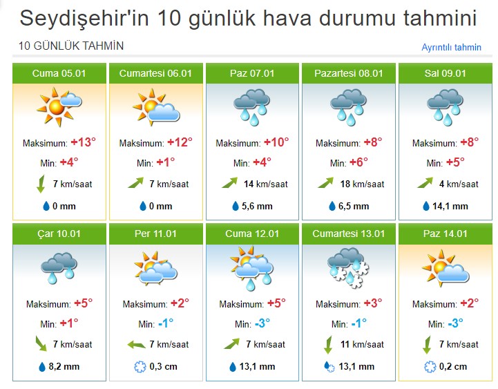 Seydişehirde günlük hava durumu tahmin raporu şöyle:
