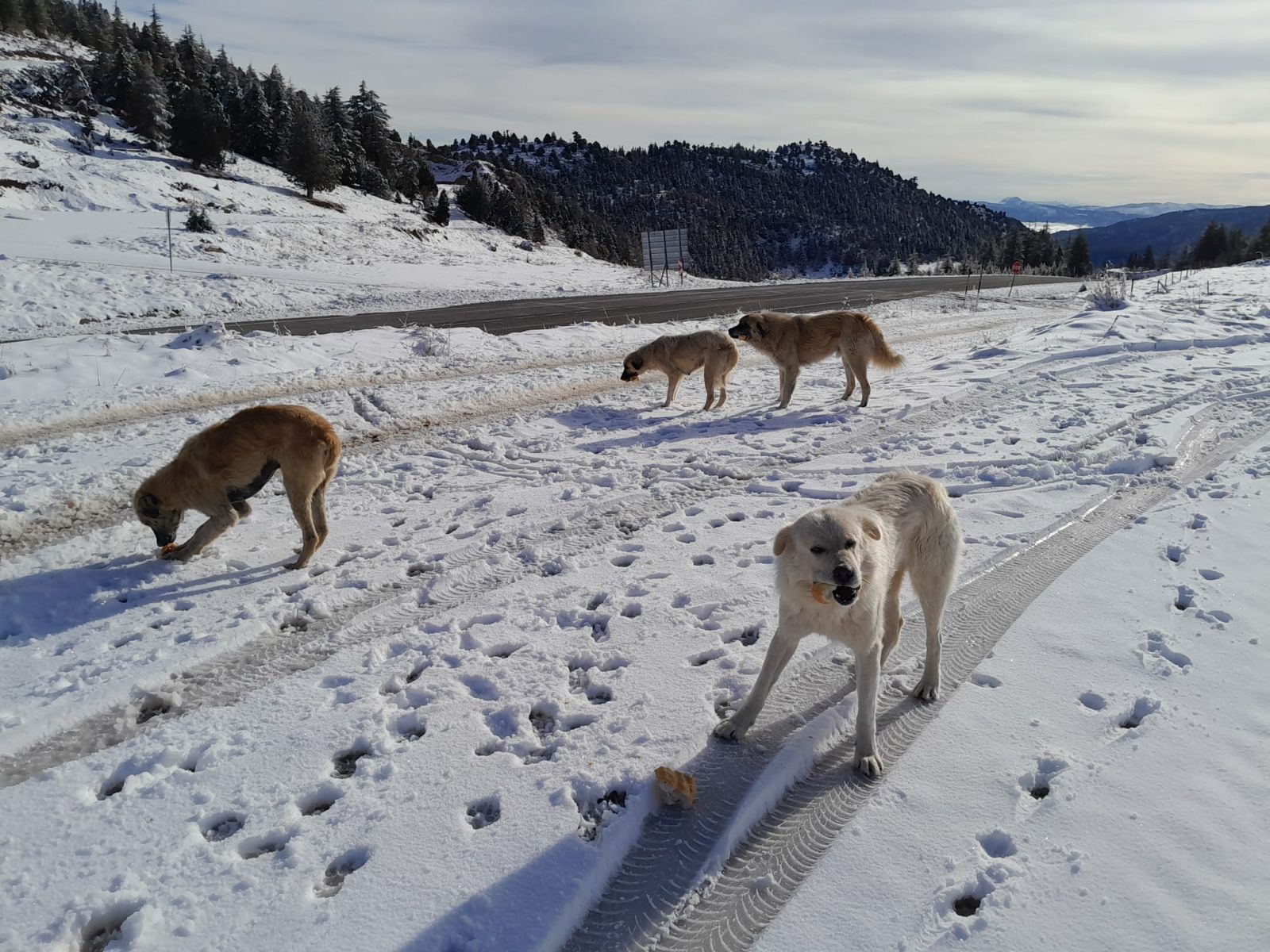 Belediye Başkanımız Sayın Hasan Koçer, yaptığı açıklamada, ilçeye 17 kilometre uzaklıktaki Gölcük Yaylasın'da kış döneminde boşalmasının ardından burada yaşayan köpeklere yiyecek desteği sağladıklarını söyledi.