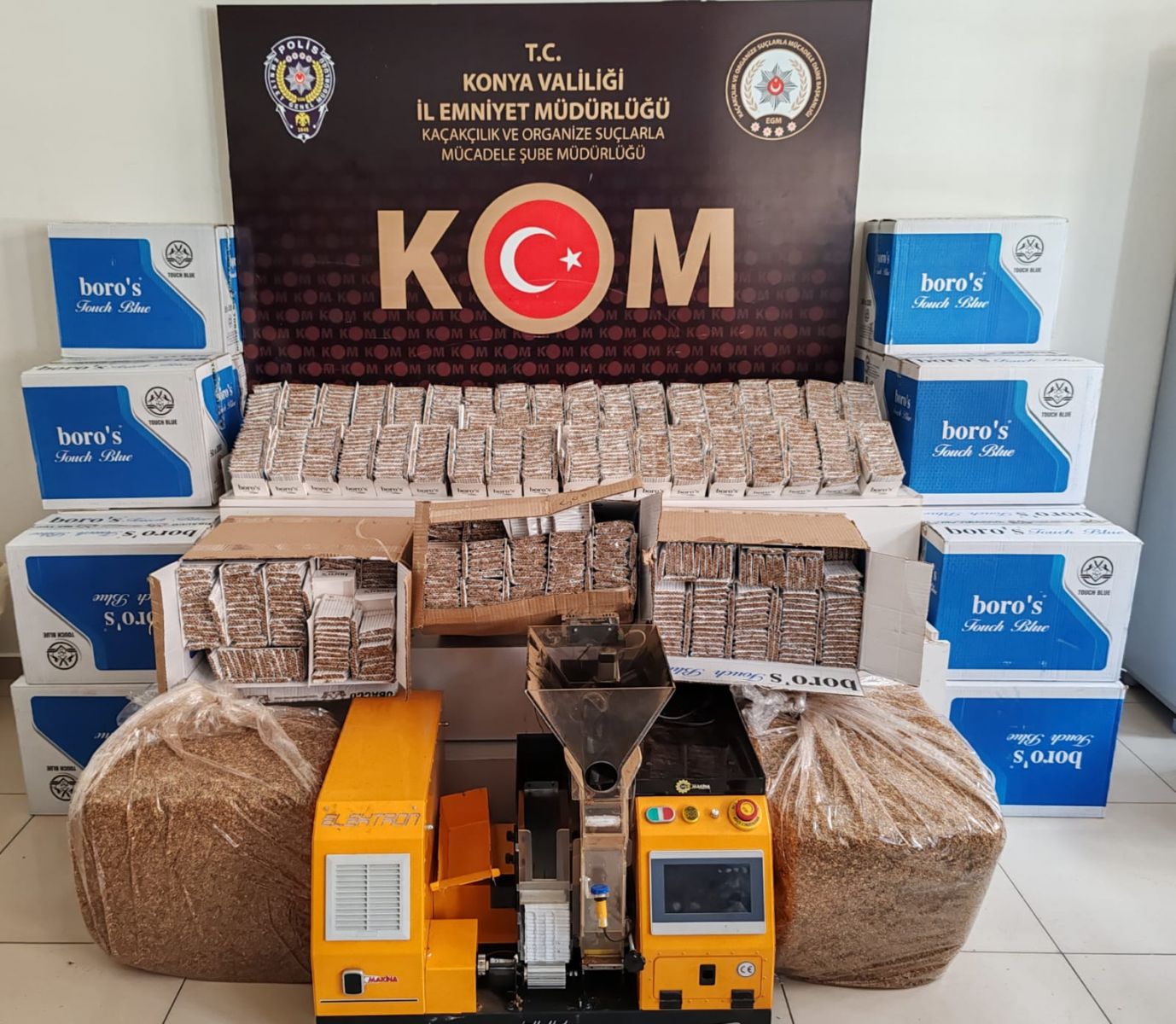 Konya Emniyet Müdürlüğü’ne bağlı Kaçakçılık ve Organize Suçlarla Mücadele Şube Müdürlüğü ekipleri, kaçakçılara yönelik operasyonlarını aralıksız sürdürüyor. Selçuklu ve Karatay ilçesinde kaçak sigara üretimi ve satışı yapıldığı tespit edilen 4 işyeri ve 1 araçta arama yapıldı. Yapılan aramalarda 180.000 adet bandrolsüz boş makaron, 51.400 adet doldurulmuş sigara, 1.040 paket gümrük kaçağı sigara, 34 kg. kıyılmış tütün, 3 adet sigara üretiminde kullanılan makine, 4.452 adet gümrük kaçağı tıbbi ürün ve 126 şişe sahte bandrollü alkollü içki ve 2 adet ruhsatsız tabanca ele geçirildi. 7 şüpheli gözaltına alındı.