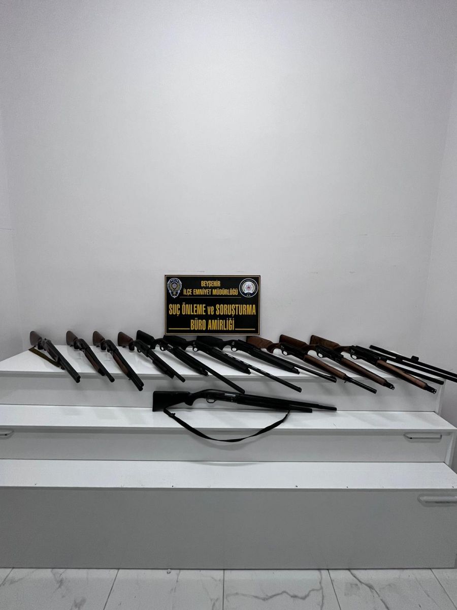 KOM ekiplerince Beyşehir İlçesinde silah kaçakçılarına yönelik yapılan çalışmalar neticesinde, 2 araçta yapılan aramada 11 adet ruhsatsız av tüfeği ve 182 adet tabanca parçası ele geçirildi. 3 kişi gözaltına alındı.