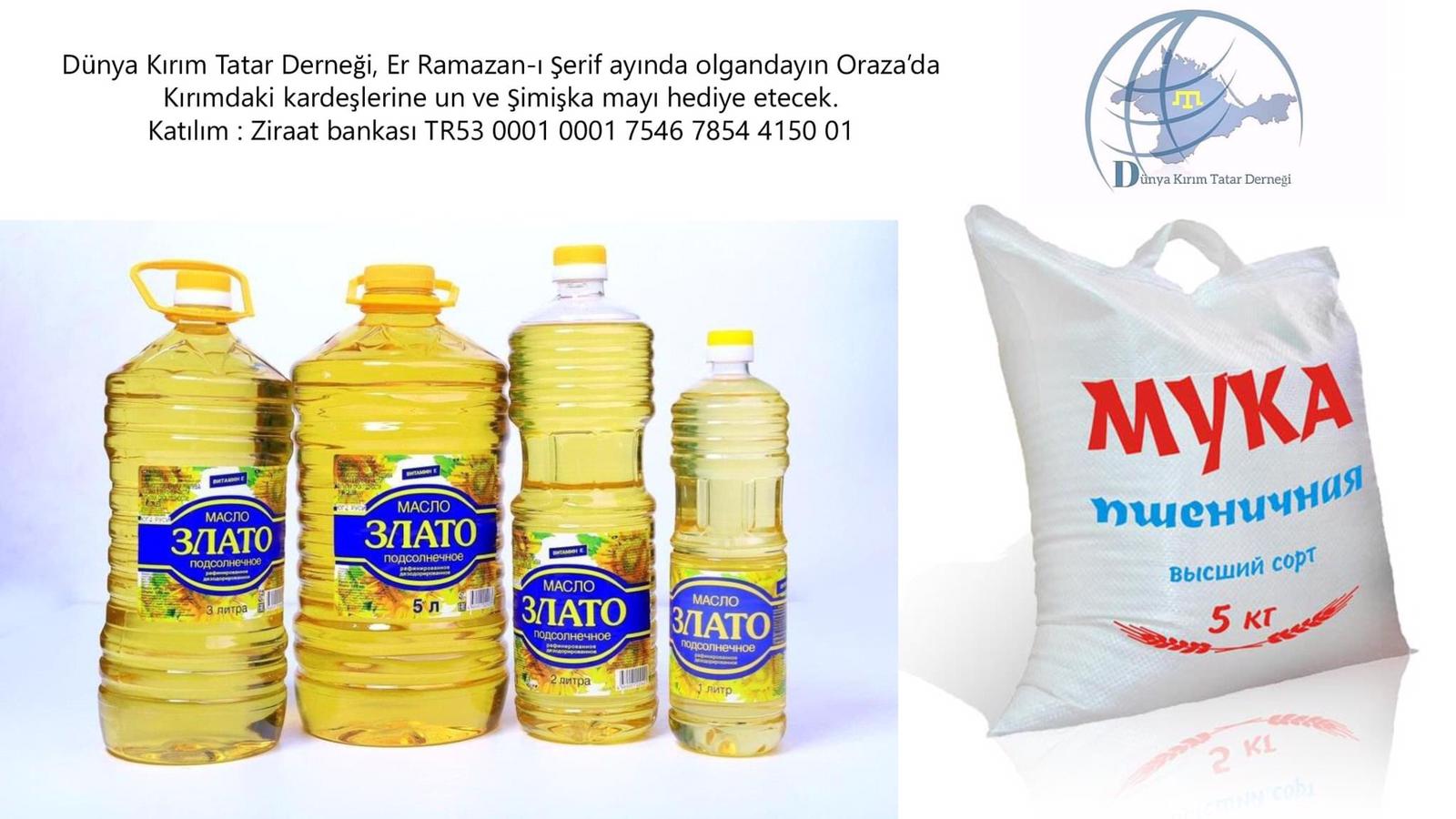 Kırım’da iftar ve insani yardım ulaştıran tek kurum olan Dünya Kırım Tatar Derneği Un ve Ayçiçek yağı dağıtacak. Kırım’da iftar ve insani yardım ulaştıran tek kurum olan Dünya Kırım Tatar Derneği Başkanı Mustafa Sarıkamış yaptığı açıklamada “Bugün Ramazanın ilk günü Kırımda ilk iftar Dünya Kırım Tatar Derneği tarafından Canköy de Qalay islami ilimler Medresesin de verilecek.
