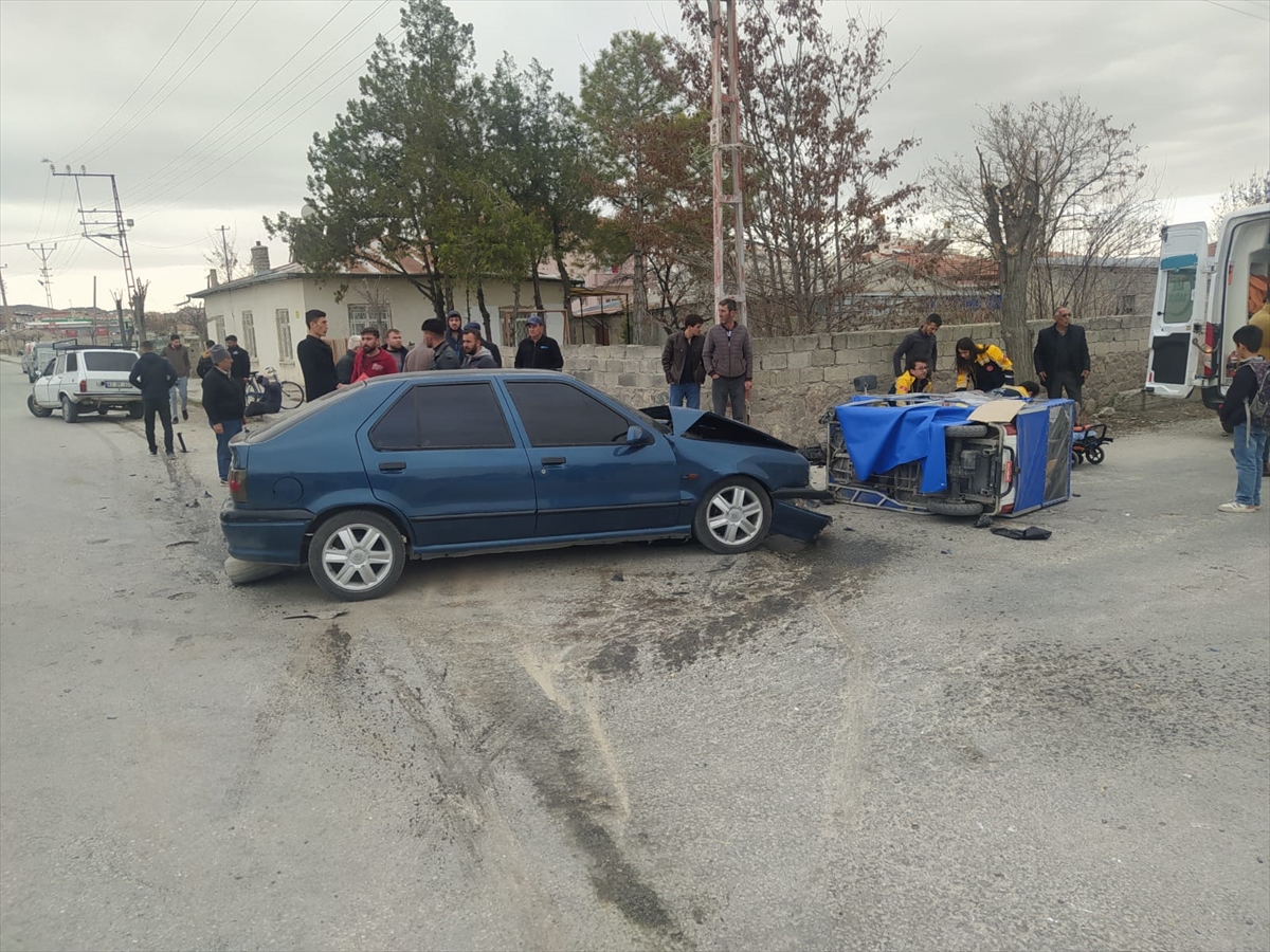 KONYA (AA) - Konya'nın Karapınar ilçesinde iki otomobil ile üç tekerli motosikletin karıştığı kazada 4 kişi yaralandı.